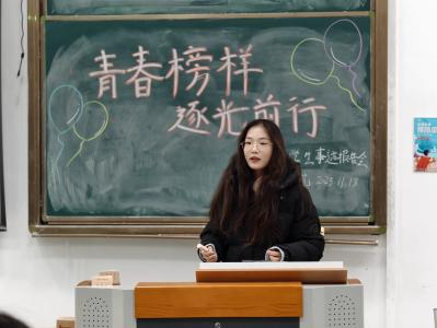 报告会开始,25级护理专升本5班李艾佳作为主持人率先登场,围绕本次活动开展的目的与进程做了简单的介绍。她既是串联环节的“桥梁”,也是带动情绪的“氛围组组长”,用幽默风趣的表达拉近距离,用真诚热忱的互动调动热情,让每一位观众都能沉浸其中,感受活动的气氛与温度。